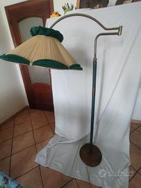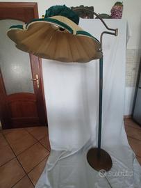Lampada da terra decò stelo rivestito in pelle verde il cappello ha una stoffa sottile plissettata écru con bordi in velluto verde , prezzo trattabile.