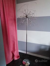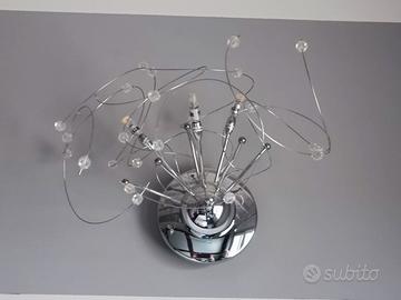 Lampada da terra moderna dal design sferico con bracci in metallo cromato e due appliques caratterizzate da una struttura in metallo cromo lucido.