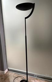 Lampada da terra con struttura telescopica regolabile in altezza e con parlume rotondo orientabile in tutte le direzioni. Realizzata in metallo verniciato con base in ghisa, risalenti alle fine degli anni ‘80/inizio ‘90.