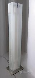 Il corpo della lampada è costituito da una struttura che contiene 4 tubi neon nascosti dietro un rivestimento in vetro sabbiato. Sulla parte superiore della lampada sono installate lampade alogene regolabili che forniscono una luce diretta verso l'alto. La base della lampada è in metallo cromato. Produzione Fontana Arte, 2003.