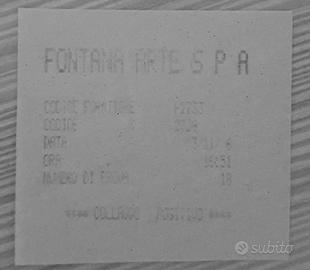 Titolo Lampada da terra FontanaArte Flute 3300 originale Proponiamo in vendita elegante lampada da terra FontanaArte modello Flute 3300, autentico esempio di design italiano senza tempo. Si tratta di un oggetto di alta gamma, caratterizzato da: diffusore conico in vetro trasparente di grande impatto scenico struttura interna cromata con finiture di pregio linea essenziale e raffinata, perfetta sia in ambienti moderni che classici produzione originale Made in Italy La lampada è completa di certificato originale FontanaArte e rappresenta un elemento d’arredo ricercato, ideale per chi desidera un pezzo di design autentico e non commerciale. Condizioni Ottime condizioni generali. Perfettamente funzionante. Sempre tenuta con cura. Prezzo 900.00 euro (trattabili)