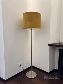 Lampada da terra Una base nichelata dal design lineare, abbinata a un paralume in tessuto giallo scuro che diffonde una luce uniforme e decorativa nella stanza. Paralume, giallo scuro velluto, 42 cm