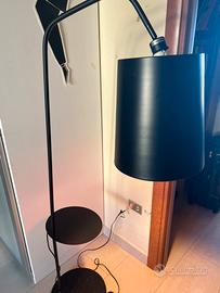 REGALO una lampada da terra moderna con struttura in metallo verniciato nero. Serve come illuminazione d’ambiente o da lettura, con fascio luminoso diretto verso il basso.
