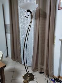Lampada da terra in ferro battuto e vetro cristallo. Altezza 1 metro e 85 cm. Manca interruttore dimmerabile per regolare intensità, funziona perfettamente con luce statica. Vendo causa trasloco, Ritiro a Verona, zona Borgo Roma. Massima serietà