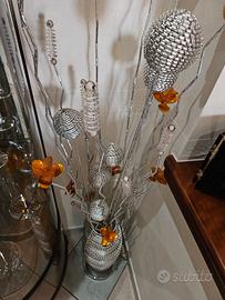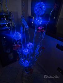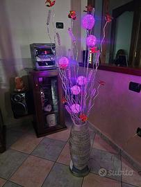 Lampada da terra in metallo con fiori arancioni con illuminazione bianca e a più colori