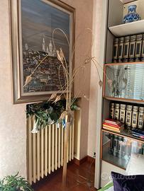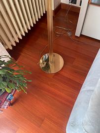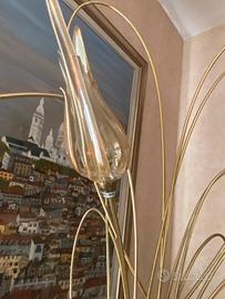Lampada da terra a stelo multiplo in ottone con paralumi a tulipano in vetro di Murano. Aureliano Toso. Con tutti i pezzi disponibili. Prezzo di vendita intorno ai 380€.