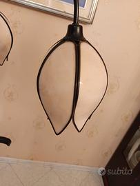 struttura a tre bracci in metallo, diffusori a forma di tulipano in vetro