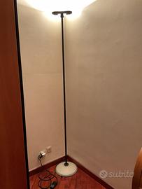 Splendida piantana anni ‘80, di King-Arnaldi per Arteluce. Paraluce e base in vetro sabbiato bianco, luce alogena a risparmio energetico, potenziometro luminosità alla base con leva. H 195, base diametro 30, paraluce L 37. Eventuale spedizione da concordare