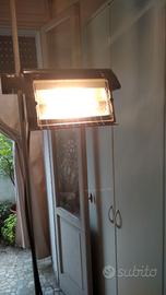 Lampada da terra Oluce di Joe Colombo regolabile, stelo in acciaio cromato, portalampada e base in ferro verniciato nero, luce alogena regolabile e orientabile