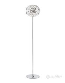 Una famiglia completa di lampade. Disponibile a sospensione e la più recente versione da terra disponibile in altezza 130. La particolarità è data dalla forma leggermente ovoidale del diffusore trasparente, caratterizzato da una superficie sfaccettata sia nella parte interna sia esterna che crea un ricco gioco di riflessi.