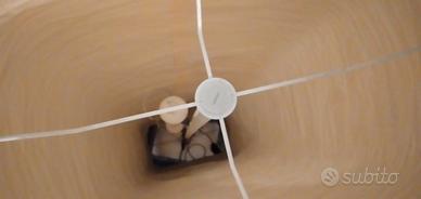 Lampada da terra decorativa che emana una luce calda e diffusa attraverso il suo paralume tubolare in carta di riso effetto stropicciato,come nuova.Astenersi perditempo ,grazie.