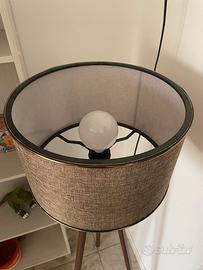 Lampada da terra con paralume cilindrico perfetta per un angolo lettura stupendo! Acquistata su sito di arredamento di design Westwing, non ricordo il brand. Struttura in legno composta da tre gambe (il fondo è leggermente sbeccato) e paralume in tessuto intrecciato beige con bordino dorati. Venduta con lampada inclusa. La lampada è praticamente nuova e presentava i piccoli difetti presentinin foto già all’aquisto.