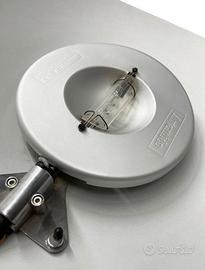 Artemide "Zen" lampada da terra di Ernesto Gismondi. alogena con paralume in alluminio di forma rotonda e una piccola lampada sotto il paralume. Il paralume può essere abbassato a sinistra e a destra lateralmente.