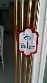 Lampada fabbricazione anni 80 in metallo ottonato, originale Irilux con 7 punti luce in vetro di murano. Vendita per liquidazione aziendale, in sala mostra.