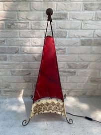 Lampada da terra o tavolo Etnica in pelle e metallo. Misure: 38x38x85 cm