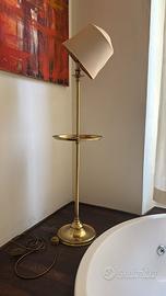 Vendo elegante lampada da terra (piantana) vintage, un pezzo d'arredo raffinato che unisce il fascino dello stile classico alla praticità. Realizzata interamente in ottone lucido, si distingue per la sua linea slanciata e la presenza di un utilissimo ripiano circolare integrato (tavolino da fumo/poggiaoggetti), ideale per appoggiare un libro, un caffè o il telefono. Dettagli principali: • Materiale: Struttura in ottone massiccio di ottima qualità. • Design: Stile classico/retrò, perfetto per salotti, studi o angoli lettura. • Funzionalità: Tavolino circolare a metà altezza. • Condizioni: Ottime condizioni estetiche. L'ottone conserva la sua lucentezza originale. Paralume originale color crema incluso, in buono stato. • Cablaggio: Funzionante, dotato di interruttore a pedale originale per una comoda accensione. Un complemento perfetto per chi ama lo stile Mid-Century o desidera aggiungere un tocco di calore dorato alla propria casa.
