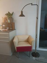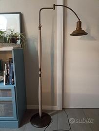 Lampada piantana da terra vintage, d’epoca anni 40, ottone e legno con braccio snodabile.