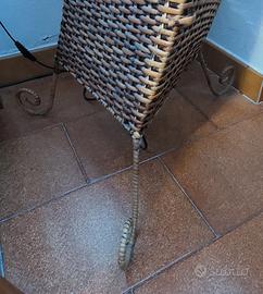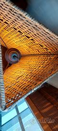 Lampada da terra/piantana in vimini. Altezza 150 cm. Ingombro dei piedi 50/60 circa. Con 2 portalampada.