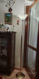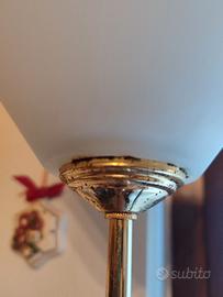 Vendo bellissima lampada vintage fine anni 90 primi anni 2000, il corpo è in ottone e legno mentre la lampada in alto è vetro opalino. Perfettamente funzionante, con filo elettrico lungo circa 180 cm, si accede premendo con i piedi il bottone posizionato nel filo. Presenta delle macchioline sul piede, date dall'età e dall'uso, ma si notano se guardi da vicino. Per altre info contattemi. Si può visionare senza impegno al mio domicilio, previo appuntamento. Non Spedisco. Ritiro al mio domicilio. Pagamento in contanti.