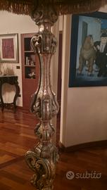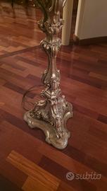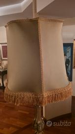 Lampada in stile Barocco con finitura dorata e paralume in tessuto sfrangiato.