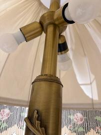 Lampada Tiffany con base in legno e ottone e paralume in tessuto con decorazioni floreali. Ritiro in zona Roma.