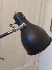 lampada da terra Ikea con braccio regolabile in 2 snodi per diverse angolaturei, paralume ruotabile, come nuova, base di metallo pesante diametro 30 cm, molto stabile, misura da terra 170 cm, colore nero (interno paralume bianco)