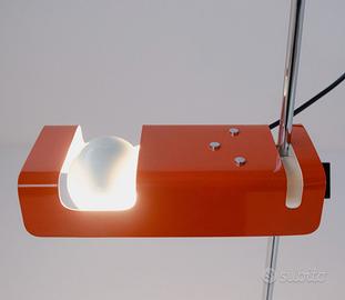 Lampada da terra Spider nella sua versione più iconica, con base e riflettore in metallo laccato arancio. Disegnata da Joe Colombo nel 1965, questa piantana ha rivoluzionato il concetto di illuminazione domestica e ha vinto il Compasso d’Oro nel 1967.