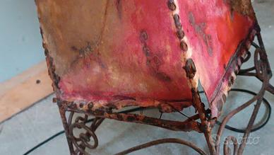 Vendo lampada da terra stile etnico/marocchino con struttura in ferro battuto e rivestimento in vera pelle naturale.