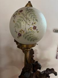 Spettacolare lampada da terra art Deco artigianale fatta a mano con tronco d’albero, per tutti i tipi di arredamento. Con doppia sfera Altezza 180 cm