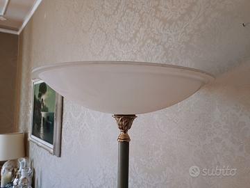 Lampada piantana stile classico con porta lampada in vetro satinato e base in ferro lavorato. Peso Kg 15.