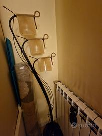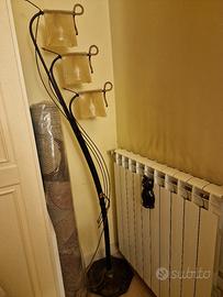 lampada da terra in terro battuto e vetro decorato con 3 punti luce altezza 1 metro e 85 circa.