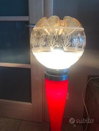 Lampada da terra vetro Murano, base cromo e vetro con illuminazione interna, sfera superiore vetro con illuminazione interna, cablaggio revisionato. Arreda con gusto tutti gli ambienti della casa. Ideale anche per spazi commerciali espositivi, vetrine, negozi. Altezza cm. 100