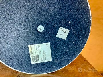 moderna lampada a stelo anni 90 , dal design inconfondibile e ricercato, regolabile in altezza e nel brandeggio del braccio snodato , in acciaio cromato e base a contrasto grigio opaco verniciato a polvere, caratteristico il piede ad arco e l'alimentatore toroidale a vista racchiuso nel suo involucro trasparente con annesso interruttore a pedale per l'accensione