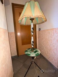Vendo lampada da terra anni ‘50 con paralume plisettato e tavolino in vetro.