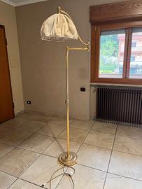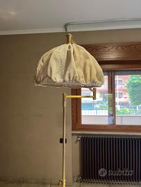 Vendo elegante lampada da terra in stile classico, struttura in ottone e paralume in tessuto chiaro.