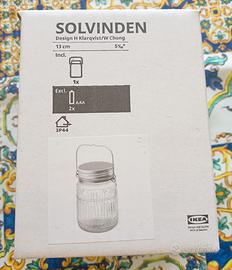 Lampada decorativa da tavolo a LED energia solare per esterni, a batteria, in vaso trasparente 13 cm. Ikea. Istruzioni all'interno. Confezione mai aperta. Prezzo fisso.