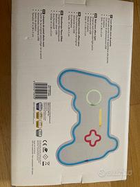 Lampada decorativa a forma di controller di video giochi che è collegata alla rete elettrica tramite cavo e presa usb fornite nel l’acquisto. Non fornisco invece la spina da usb a presa presente nell’ultima foto. Nuova con imballaggio originale mai usata causa regalo.