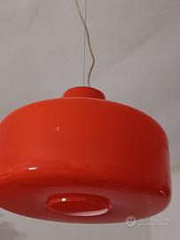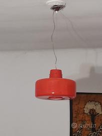 Lampada in vetro rosso, interno bianco. Design anni 70, modernariato Molto bella.