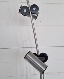 Nuova, come la parentesi di flos si possono adagiare più punti luce sulla stessa barra in metallo che va a fissarsi tra soffito e pavimento grazie a 2 tondi in pvc. È una lampada di alto design adatta ad ogni tipo di ambiente ed ogni stanza della casa. La lampada è completamente orientabile grazie alle rotelle che scorrono sulla barra e orientabile a 360°. Monta normale lampadina E27. Lunghezza dell'asta 290cm. Il prezzo include l'asta con 1 corpo illuminante.