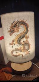Lampada da Comodino paralume in tela rigida grafica Drago simbolo di fortuna base in Legno Nordico Luce LED basso consumo energetico Adatta per Camera da Lettoo soggiorno Luce Alimentata tramite USB, Perfetta nuova mai usata con scatola originale ideale anche per un eventuale regalo.misure ottime altezza cm 25 larghezza cm 13.Bedside lamp with rigid canvas shade Dragon graphic, symbol of good luck, wooden base Nordic light Low-energy LED light, suitable for bedroom or living room Powered by USB, perfect, new, never used, with original box, also ideal as a gift. Excellent dimensions: height 25 cm, width 13 cm.