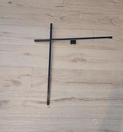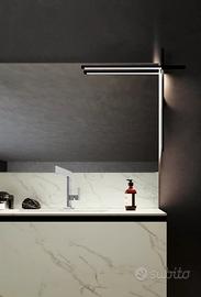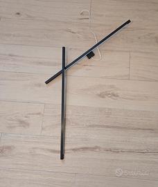 La lampada é in metallo nero con illuminazione a LED su entrambi i bracci, il braccio superiore orientabile