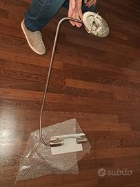Lampada in acciaio satinato con vetro bianco opaco per lampadina led.E27 adatta per.ingresso,.corridoio, bagno, cucina. Attacco a soffitto diametro 16 cm, lunghezza braccio cm. 80, riflettore vetro cm. 23