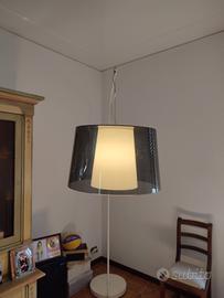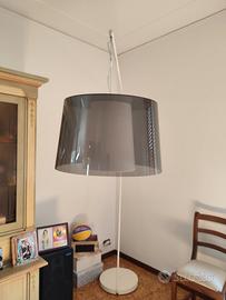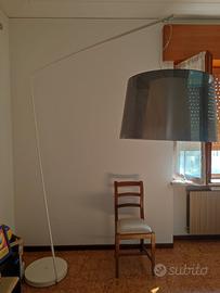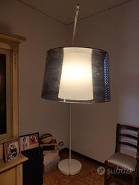 lampada moderna con piedistallo e manico in metallo ,accensione sulla base con pulsante si accende con piede ,paralumi 2 in plastica ,presa in esposizione negozio ,non nuova ,qualche segno sul paralume marrone essendo plastica essendo stata in esposizione nel spostarla o smontarla ha qualche segno ,solo ritiro a mano troppo pesante