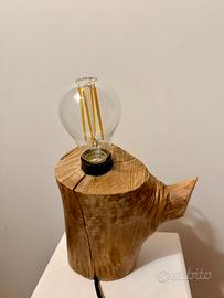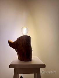"Vendo lampada artigianale realizzata a mano da tronco naturale. Lo stile 'Live Edge' unisce il fascino rustico del legno alla modernità di una lampada di design.
