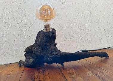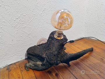 Lampada da tavolo unica, realizzata con un pezzo di tronco e dettagli in ottone. Un elemento d'arredo originale che aggiunge un tocco naturale e industriale. - Base in legno grezzo. - Portalampada in metallo finitura ottone. - Misura cm 66x28 e cm 26 di altezza. - Lampadina non inclusa.
