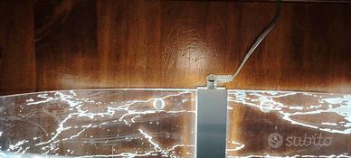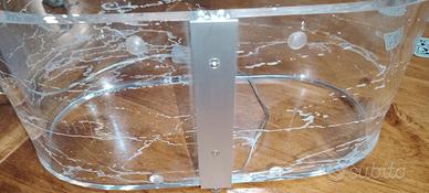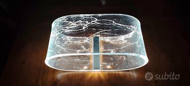 Lampada da tavolo Future Marble prodotta da Vesta. Si tratta di un pezzo di design moderno realizzato in cristallo acrilico (plexiglas) trasparente, caratterizzato da eleganti incisioni laser che richiamano le venature del marmo Ottimo stato. Consegna a mano