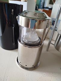 questa lampada da tavolo dal design danese è fatta di vetro soffiato e si può usare sia per esterno che per interno. la lampada si può usare sia ad olio che con candelina.Per usarla con il lumino è necessario rimuovere lo stoppino. Tutte le istruzioni sono sulla scatola che si presenta leggermente ingiallita dal tempo ma la lampada al suo interno è nuova.