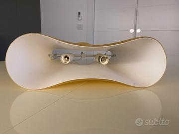 Lampada di design a soffitto, in vetro di Murano (vedi bollino foto n2), Egoluce originale. Come nuova. Alloggio x 2 lampadine E 27. Misure: base superiore 30 cm base inferiore 40cm altezza 35 cm