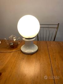 Lampada a sfera di vetro soffiato opalina bianca cm18 su supporto in metallo smaltato bianco . Altezza totale cm 30. Altezza supporto cm 13.