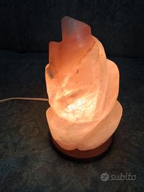 Bella lampada il salgemma naturale (cristallo di sale rosa dell'Himalaya), caratterizzata da una particolare ed elegante lavorazione a fiamma/spirale eseguita a mano. Caratteristiche principali: - Materiale: salgemma naturale formato da evaporazione millenaria, ricco di minerali (ferro per le sfumature rosse) - Design: forma intagliata molto decorativa, perfetta per ogni ambiente - Benefici: funge da ionizzatore naturale quando riscaldata dalla lampadina, aiutando a purificare l'aria e contrastare l'elettrosmog di PC e TV; crea un'atmosfera rilassante con una luce calda e soffusa; ideale anche come luce notturna per bambini o per sedute di cromoterapia e relax - Condizioni: buone, perfettamente funzionante (come da foto); include base in legno cavo e interruttore originale - Manutenzione: pulire solo a secco - Peso: 3 kg circa